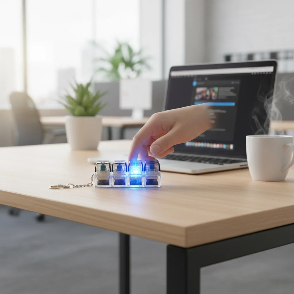 Hear that? It's the crisp, satisfying click of real mechanical switches. Each tap is a little moment of mindful focus, designed to melt away that buzzing stress and bring you back to calm. Pure sensory bliss, right in your hand.